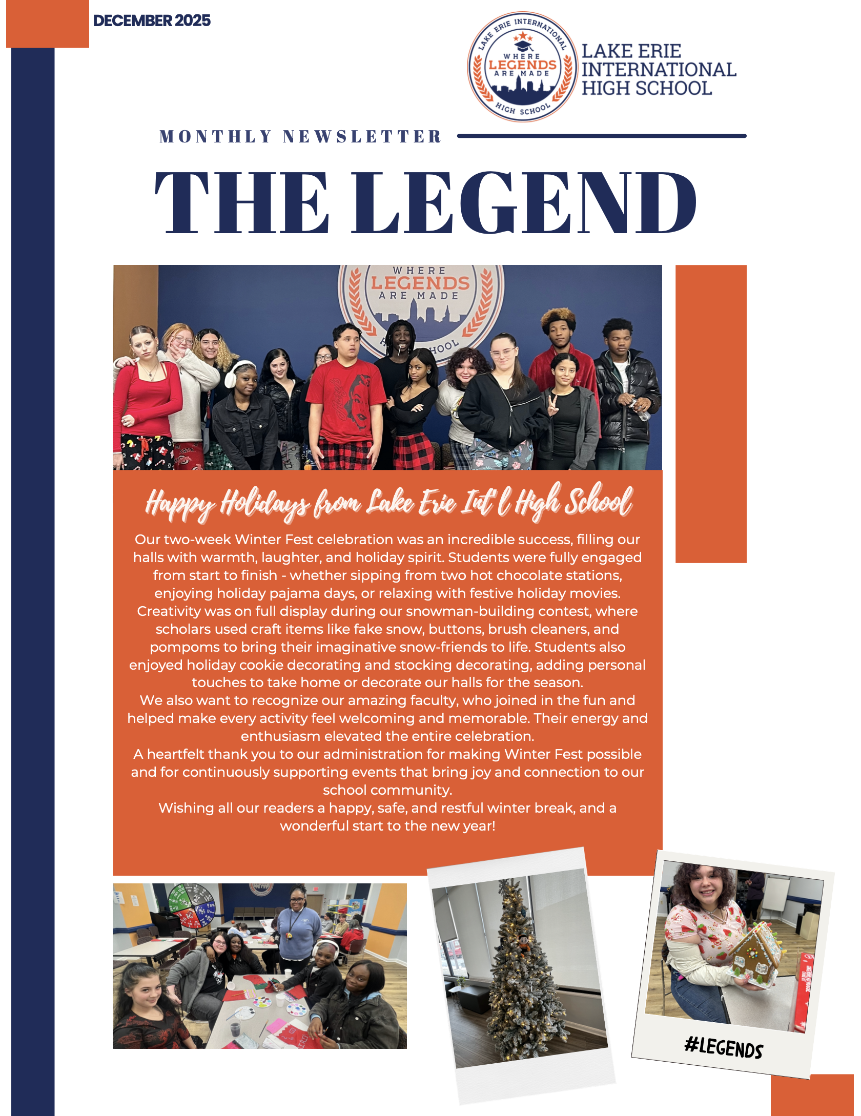 Take a look at our December newsletter to read more about our holiday events, including building gingerbread houses, our Best Snowman in Town Contest and important upcoming school calendar dates. Wishing all our readers a happy, safe, and restful winter break, and a wonderful start to the new year!